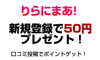 りらまにあ!に新規登録をすると50ポイント付与されます。クチコミ一件につき、公開後30ポイントプレゼント。ポイント換金方法は、現金又は、景品と交換させて頂きます。『500ポイント(1P=1円)より現金化』