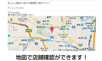 Gooole mapを使用することで、最寄り駅から治療院までのアクセス方法や、治療院の周辺の地図を表示します。